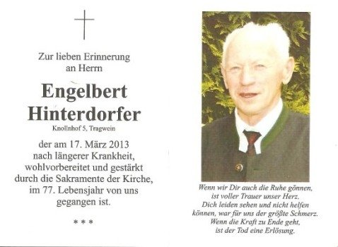 42 Kameraden aller Tragweiner Feuerwehren begleiteten unseren Kameraden Englbert Hinterdorfer am Donnerstag 17.März 2013 zu seiner letzten Ruhestätte.